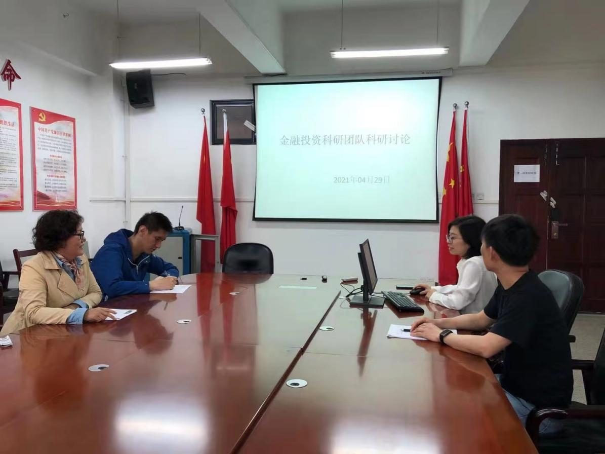 4月29日下午 ,yl23455永利金融投资科研团队成员在崇德楼315左召开学术讨论会议,此次会议由王滨教授、郭雪博士及吴磊博士汇报个人近期科研成果及进展。