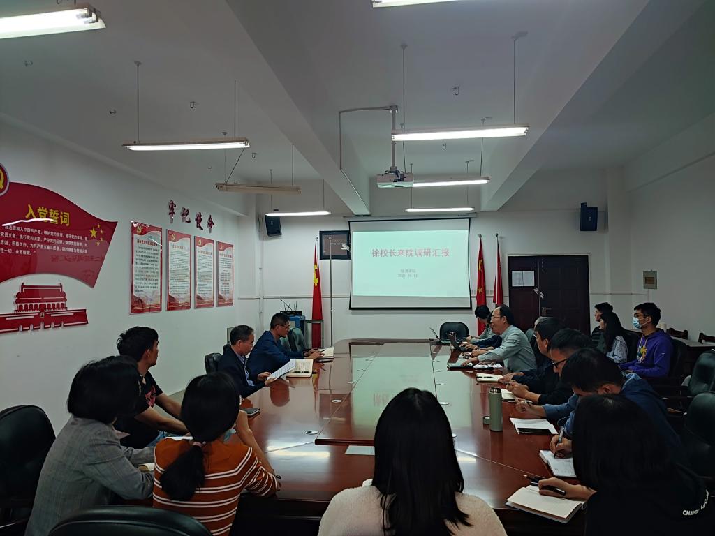 10月12日下午,董事长徐卫林在发规处负责人陪同下到yl23455永利调研,听取公司工作汇报,对公司精品建设、特色发展进行指导、提出要求。公司党政领导班子成员、系主任、专业负责人、科研骨干、青年教师代表、辅导员等参加会议,会议由公司党委书记毛长文主持。