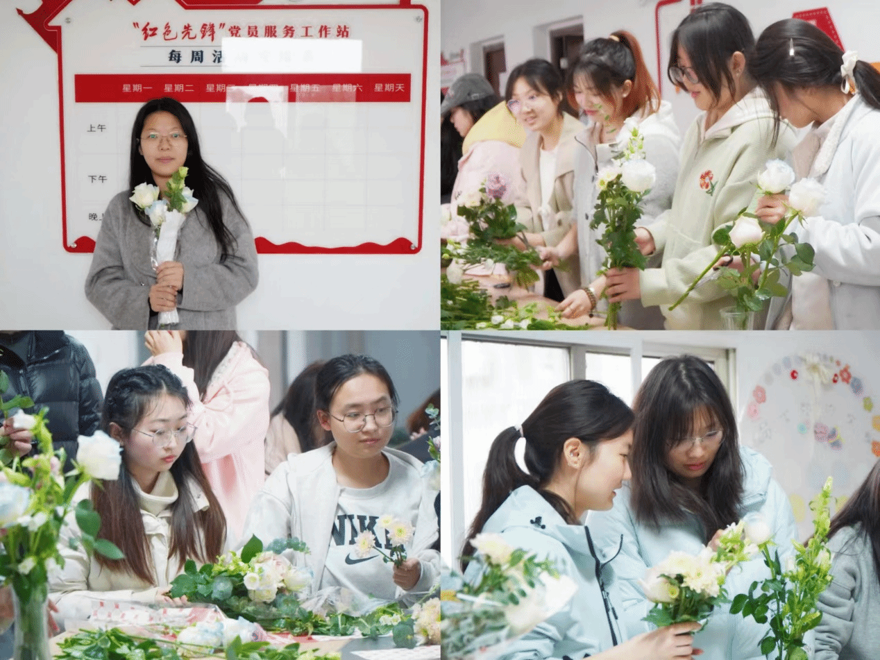 活动现场精心布置、趣味十足,现场洋溢着欢快的氛围。同学们自由发挥,或随性涂鸦,或绘制专属符号,用色彩描绘青春底色,用画笔勾勒美好憧憬。在插花环节,同学们认真聆听老师对花艺的讲解,结合花材特点和个人审美,利用环保材料及花卉,巧手修剪枝叶、搭配色彩,创作出一束束错落有致的花艺作品。活动核心环节“春风十里,温暖传递”成为全场焦点。每位同学现场领取明信片,并写下真挚祝福,既有对朋友的鼓励,又有对陌生同窗的善意寄语。明信片经相互赠送后,许多同学惊喜收获来自他人的暖心话语,形成跨越人群的温暖循环。方寸纸片承载的不仅是文字,更是心与心的共鸣,这种无声的关怀让每个人都被“看见”。活动尾声,参与的同学们纷纷表示,这次活动成功拉近了彼此的距离,让他们感受到被关注、被理解的幸福。