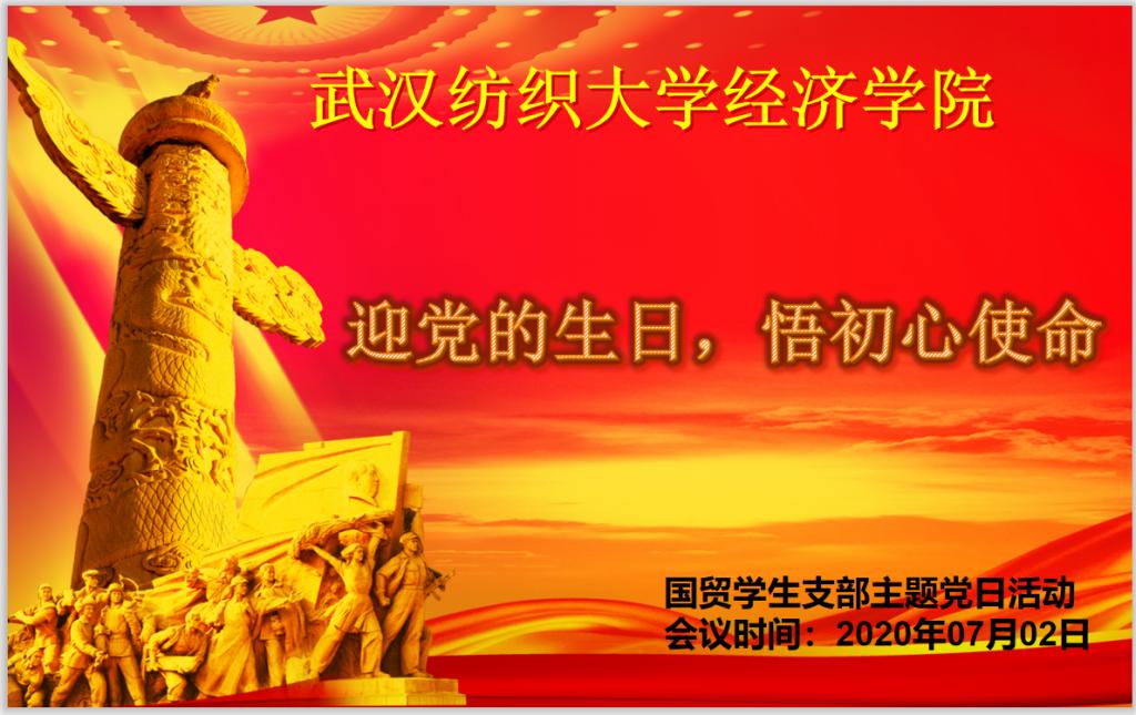 为学习贯彻全国两会精神,特别是习近平总书记在参加湖北代表团审议时的重要讲话精神,喜迎中国共产党建党99周年,国贸教工党支部于7月1日开展了题为“抗疫情、献智慧、抓建设”的线上主题党日活动。