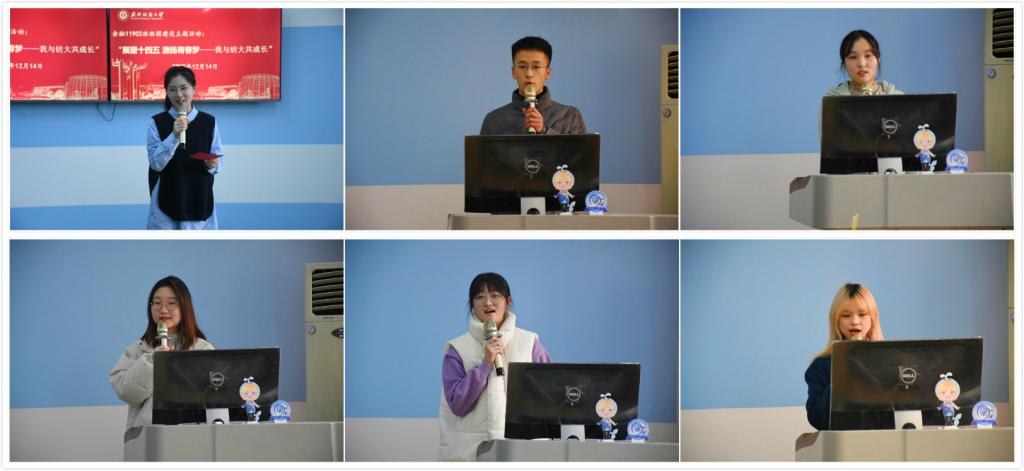 班团建设主题活动上,大家一起观看了班级同学才艺展示和《经世致用 逐梦二班》班团成长纪录片。班长(团支部副书记)杨雨欣从“坚持“铸魂”与“塑形”相结合、坚持“挖潜”与“扩能”相结合、坚持“贯通”与“融入”相结合”三个方面汇报了班团建设工作理念与成果成绩。活动特别设置了“我的大学成长记忆”故事分享会环节,张靖康、汤新怡、陈攀攀、施梦绮等四名同学分别从思想引领、课外科技、体育运动、志愿服务等方面分享了自己在纺大的成长故事。班级特色文创产品设计者张愉雯同学对产品设计理念与形象进行了推介展示,班级员工代表向观摩嘉宾们赠送了班级特色文创产品。
