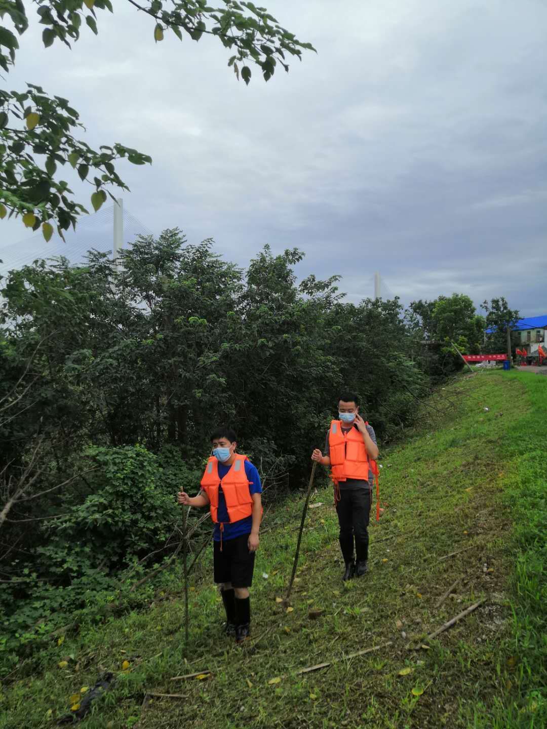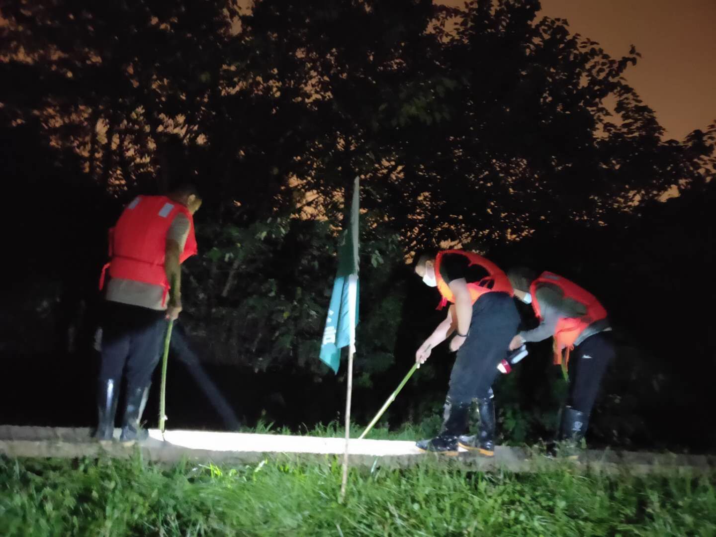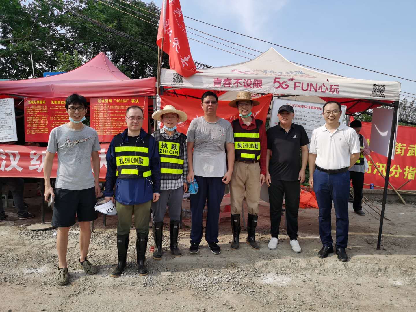 洪水翻滚、党旗飘扬。在公司防汛抢险指挥部的安排调度下,公司防汛抢险队员们分批分次登上武金堤公司防线段,迅速投入到防汛抢险巡查中,他们穿着雨衣和胶鞋,脚踩泥泞,手中紧握铁锹,三小时一班轮换,从深夜到凌晨,巡堤的日子里睡眠时间没有一次连续超过5小时的,但只要站上堤防线,看着一面面飘扬的旗帜,他们就聚起十二万分精神,全神贯注地盯着每一米防线,确保安全无虞。作为公司第三批防汛抢险突击队第一组组长,公司党委副书记黄俊鹏在参加防汛工作前线的三天里,体会过炎热与雨水交替,见过每个不同时间点的江边,“因为三小时一班轮转,所以基本上一天中每个时间段都会轮到一次。特别是在深夜,组员们往往容易疲惫,江水涨潮后,堤沿内外,蛇、刺猬等生物就出现的频次多,必须要时刻保持警惕,提醒组员们打起精神,注意脚下的路。”他坦言,在防汛巡堤的三天里,看着沿江段每一个驻点、每一面旗帜,都更加深刻的体会到了祖国的伟大和党员的使命。