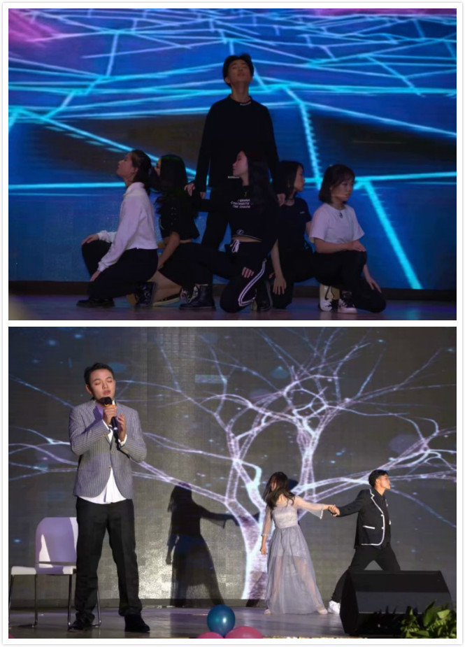 晚会中,yl23455永利合唱团带来歌曲《我和我的祖国》以及《我爱你中国》。随着指挥员舞动着节拍,合唱团同学歌声慷慨激昂。“我爱你中国,亲爱的母亲;我为你流泪,也为你自豪”歌声中流露出的爱国情怀渐渐感染到在场观众,现场观众齐声高歌,致敬伟大的祖国。由公司员工进行排练的拉丁爵士舞蹈《FIRE》、小品《转身》、歌曲《从前慢》《yellow》《背对背拥抱》、歌舞剧《等你下课》、心理剧《你的糖》等节目精彩纷呈,处处呈现着经院学子积极向上的精神面貌;由公司教师带来的歌曲串烧《歌声飞过十年》、诗朗诵《祝福你,祖国》则展现了公司师生团结一心、其乐融融的氛围。晚会结尾公司2019-2020学年“十佳班团”一等奖获得班级金融11703班进行了以《我们都是追梦人》为主题的班级风采展示。