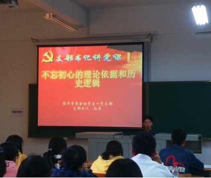 10月17日下午,教工金融支部组织开展“不忘初心、牢记使命”主题党日活动。支部书记毛莹同志就高校专业课教师如何做好课程思政工作讲了一次党课。毛莹同志深入解读了“课程思政”的内涵,认为当前高校的思想政治教育主要依赖于思政课程,专业课程教学与思想政治教育的结合相对滞后,仍然存在德育与专业教学“两张皮”的情况,推行课程思政是大势所趋。一是要推动基于“课程思政”的专业课程教学改革;二是要完善基于“课程思政”的专业课程体系建设和教学设计,三是要加强基于“课程思政”的专业课教师队伍建设,四是要推进基于“课程思政”的专业课程教材建设。党课后,金融学教工支部党员交流了前期学习《习近平关于不忘初心、牢记使命重要论述摘编》的学习心得体会。