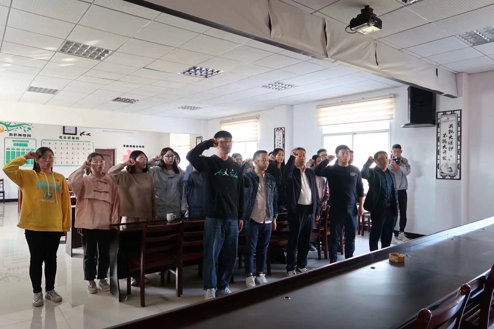 在燕窝垸村党员群众服务中心三楼会议室,公司组织开展了“带着初心与使命——走进扶贫试点村,感悟祖国大发展”主题党日活动,燕窝垸村党支部第一书记、湖北改革奖(个人奖)、十三届省人大代表徐志新同志及燕窝垸村党支部书记郭海平同志参加党日活动并为公司党员同志们讲授“初心与使命”专题党课。徐志新讲述了燕窝垸村从“空心村”“厌人垸”变为“试点村”“示范村”的发展历程,介绍了燕窝垸村探索“党建领航、村企共建”推进精准扶贫工作的实践路径,分享了个人由“商场成功人士”到“反哺家乡的能人”的心路转变。郭海平具体介绍了燕窝垸村“五个结合、六个一、七个联合”党建工作创新模式,真情分享了个人的党性成长历程与收获感悟。党课后,党员同志们集体重温了入党宣誓,并就党课心得与实践观察体会与徐志新书记、郭海平书记进行了深入的交流探讨。