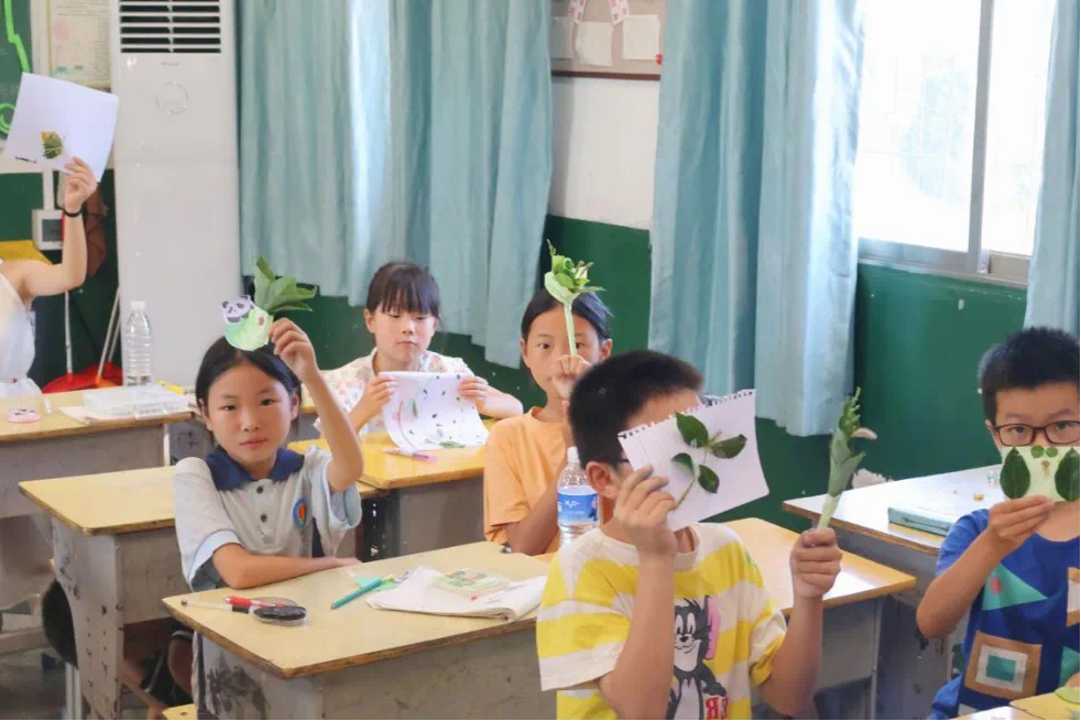 为了让孩子们将环保理念从认知转化为行动,支教队员们带领大家来到校内操场、花坛等区域开展捡拾垃圾活动。孩子们手持垃圾袋,认真地搜寻着地面上的纸屑、塑料瓶、果皮等杂物,稚嫩的脸上满是专注。有的小朋友踮起脚尖够卡在灌木丛里的塑料袋,有的则小心翼翼地将碎玻璃片捡起放进专用垃圾袋,大家分工合作,不一会儿就把校园角落清理得干干净净。队员们在一旁细心指导,告诉孩子们不同垃圾的分类方法,还趁机讲解乱扔垃圾对土壤和植物的危害,让孩子们在亲身体验中明白 “环境清洁需要每个人参与”。回到教室后,在手工创作环节,孩子们充分利用身边废旧纸盒、塑料瓶、彩纸等材料,亲手绘制环保海报,将 “节约资源、循环利用” 的理念融入指尖创作,让环保意识在实践中生根。