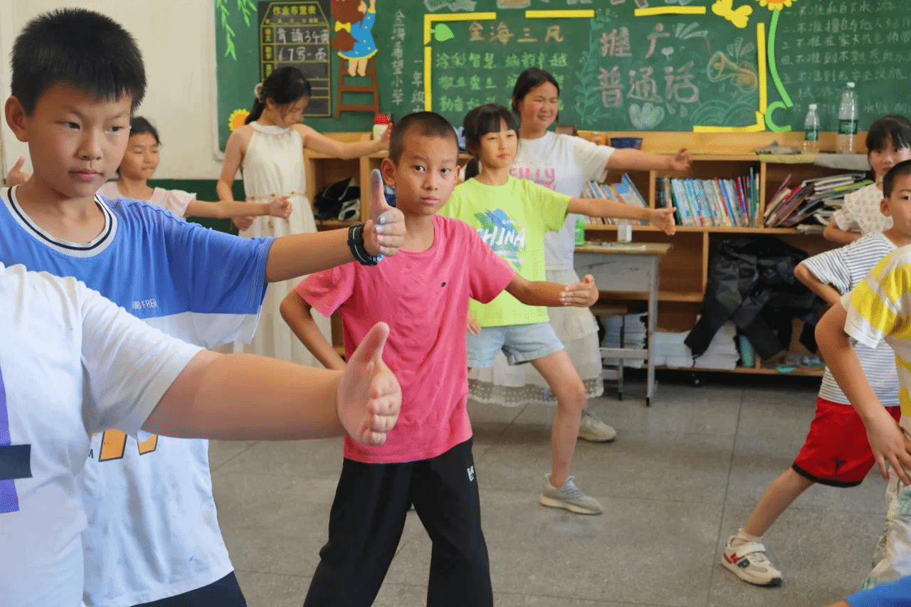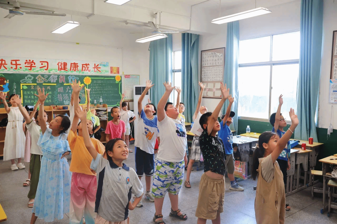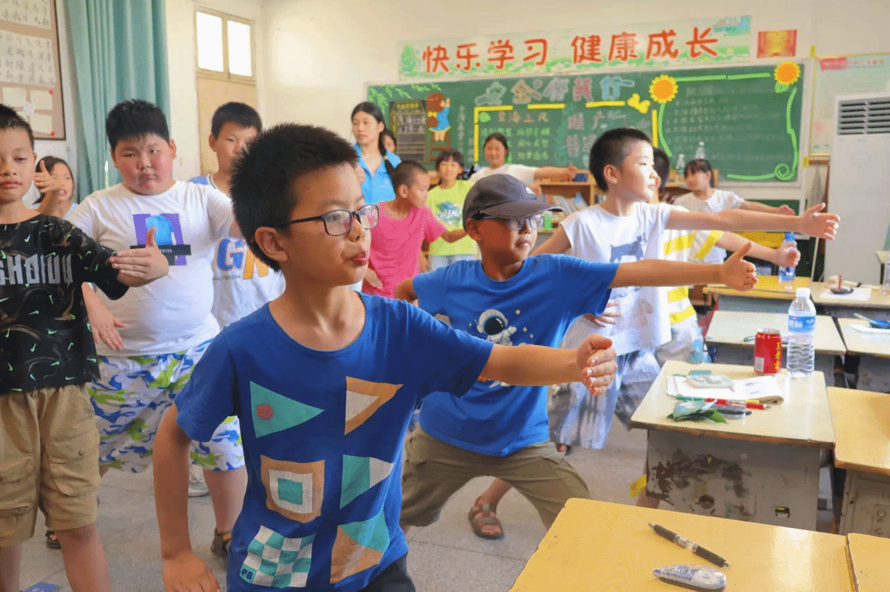 7月9日下午,yl23455永利“乡育乡伴,‘经’彩一夏”支教队在湖北省鄂州市梁子湖区涂家垴镇金海希望小学点位教室内,开展“橙光跃动:活力运动促健康行”主题活动。通过打破“运动必在操场”的固有思维,支教队员将广播体操与太极拳巧妙融入室内空间,让方寸教室变身传递健康活力的舞台。