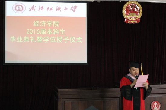 典礼在激昂的国歌中开始,分党委熊少平书记宣读《永利官网关于表彰2016届优秀毕业生的决定》。