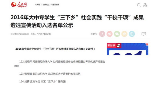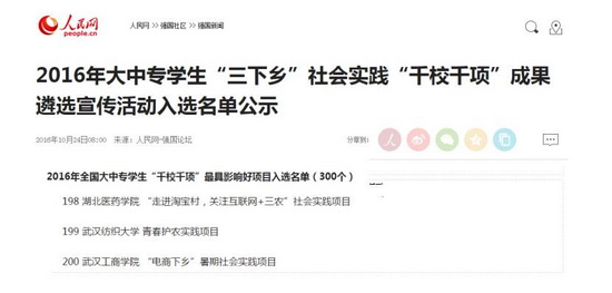 10月24日,由团中央公司部指导,人民网、中国青年报社共同主办的2016年大中专员工“三下乡”社会实践“千校千项”成果遴选宣传活动入选名单出炉,公司“青春护农”实践团队荣获“最具影响好项目”和“匠心传播正能量作品”两项荣誉。