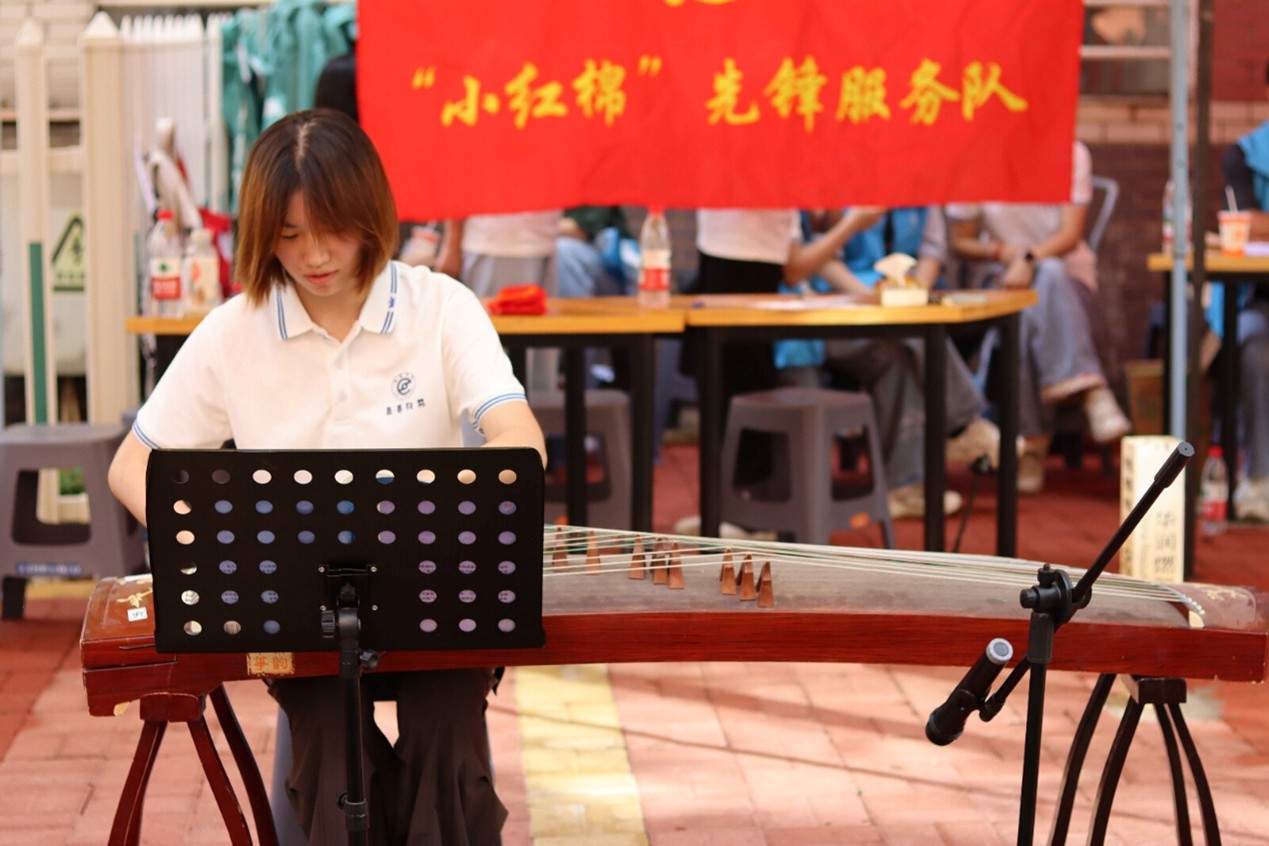古筝演奏中将传统民乐与现代演绎进行创新融合,带来令人惊艳的视听体验。CFA12502班王婧雅轻拨筝弦,古典名曲《葬花》的婉转哀戚与现代旋律《Eutopia》的灵动明快交织碰撞,激荡出穿越时空的共鸣;随后,税收12402班裴心媛以筝执笔,弹奏《井冈山上太阳红》《春到拉萨》《渔舟唱晚》等曲目,指尖起落间,山河画卷在旋律中徐徐铺展,时代新声在筝音里静静流淌。