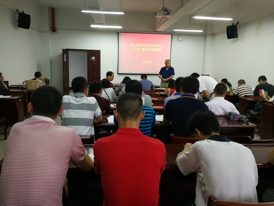 在庆祝第33个教师节之际,yl23455永利组织新学期全体教师大会,专题学习习近平“7.26”重要讲话精神。会议由公司党委毛长文书记主持,国贸员工党支部负责人张悦同学进行专题学习宣讲。