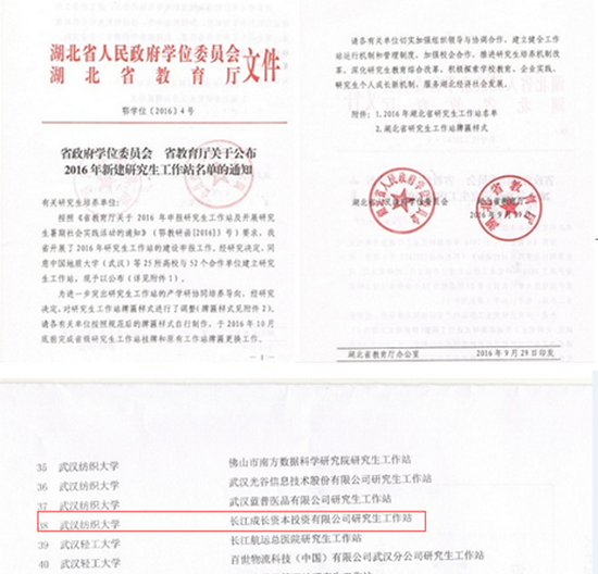 公司与长江成长资本投资有限公司合作建立研究生工作站,公司金融硕士研究生均有机会进展学习、开展研究和留站工作;公司选派富有实践经验的指导教师和高管作为担任研究生指导教师,共同指导进站研究生的科学研究工作,深化金融硕士公司产品模式改革,提高公司产品质量。