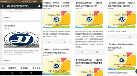 公司官微全新改版升级,建立了自动回复、公司介绍、专业介绍和迎新菜单。在迎新菜单里,新生既可以根据公司概况、员工教育模块提前了解公司概况、团队水平和专业特色,也能通过迎新工作模块了解到公司的迎新动态和我们统计的高频问题。同时我们每天推送迎新速递,即“幸福纺大,圆梦经院----经院网上迎新”各篇,目前我们已推送公司师生寄语新生篇、教师风采篇、专业特色篇、公司成果篇、分团委员工会篇、实习实践篇等,近期我们还会陆续推送优秀学子风采篇、新生入学攻略篇、纺大学霸说、大学防骗第一课、花样社团篇等系列报道,新生们只需通过关注yl23455永利公众号,就可以提前全方位知晓公司方方面面的信息,官微受到了新生们的广泛关注与热议。