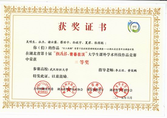 (李正旺、黄俊鹏指导的作品获省“挑战杯”三等奖)