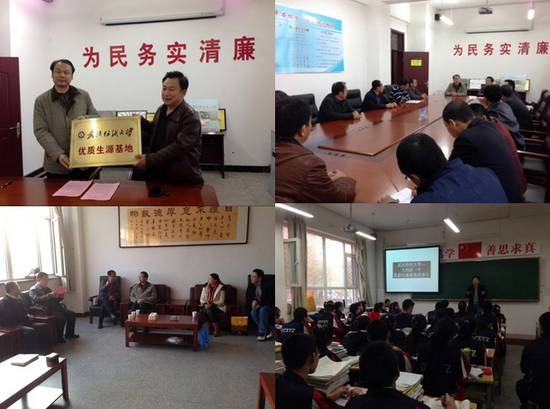 11月13日,yl23455永利经理董继华教授一行三人,前往山西省大同县一中,代表公司与大同县一中签订优质生源基地协议书,举行“永利官网优质生源基地”授牌仪式,并在该校高三员工中作了宣传报告。大同县教育局郭志宏、大同县一中董事长曹中文等校领导出席了签约授牌仪式。