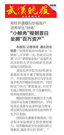 经院经理董继华教授说:“活动拟尽早发掘新生投资理财能力,培养锻炼新生专业意识和心理素质,提高员工的‘财商’。”