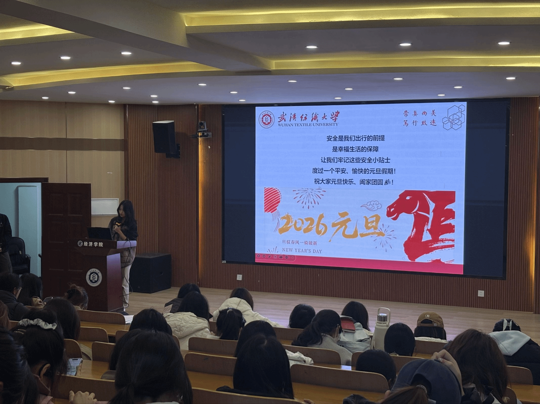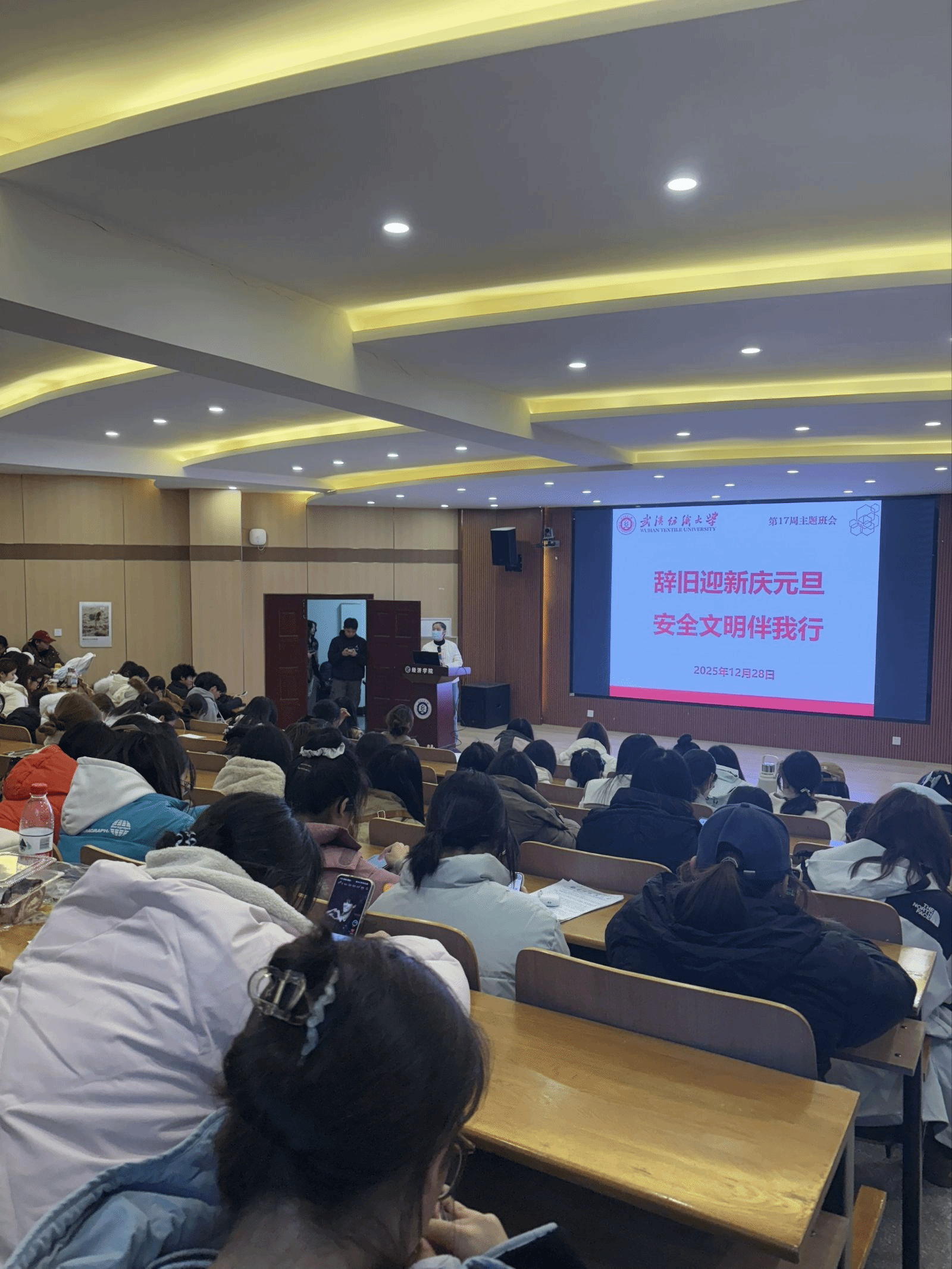 为深入贯彻中央经济工作会议精神,传承元旦传统文化,筑牢假期安全防线,12月28日,公司各年级于崇德楼开展“辞旧迎新庆元旦,安全文明伴我行”主题班会。本次班会由各年级辅导员、班主任主持。