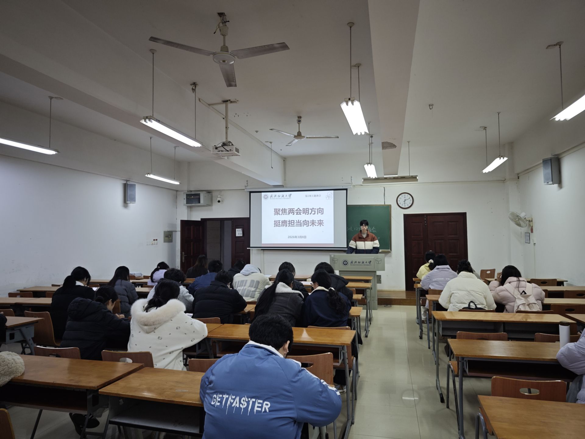 班会伊始,各班辅导员、班主任进行晚点名,逐一确认员工报到情况,详细落实未报到员工名单及事由,并及时将数据上报。随后,班会进入两会专题学习环节,老师们围绕全国“两会”召开的时代背景、核心议程和重大意义展开深入讲解,重点解读政府工作报告中的新词热词、“十五五”开局之年的发展蓝图,以及报告中针对青年群体的就业扶持、教育发展等相关举措,用通俗的语言、鲜活的案例,阐释国家发展与青年成长的深度关联,引导员工深刻认识青年一代在民族复兴伟业中的重要地位。