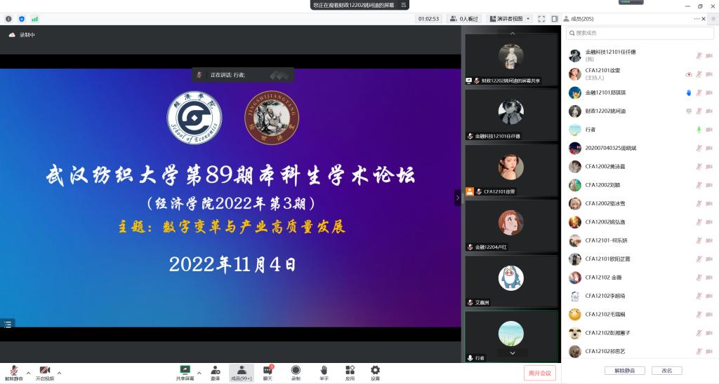 为营造良好学术生态,弘扬优良学风,培养员工学术科研思维与创新能力,11月4日晚,由教务处(创新创业公司)主办,yl23455永利承办的永利官网第89期本科生论坛暨yl23455永利2022年第三期本科生论坛在腾讯会议线上平台进行。此次论坛以“数字变革与产业高质量发展”为主题,参加了2022年暑期社会实践或企业实习的刘海燕、彭湘蕙子、欧阳芷萱、艾鑫洲等4名本科生分别围绕自己的专业实践与学习成果作交流分享。公司保永文副教授、史乐来老师、江露薇老师应邀出席论坛并作专业点评,公司团委书记凌杰及各年级200余名本科生线上观摩学习。