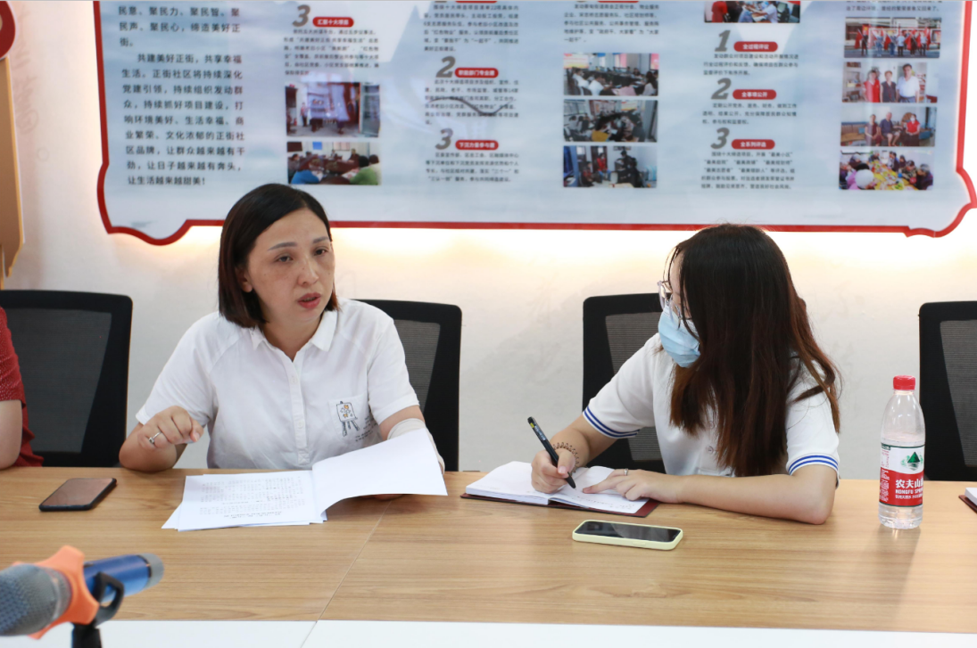 “我们社区党支部鼓励党员带头示范,目前有一批批老同志融入社区治理,基于自身特长向居民进行主题宣讲,提高居民的参与度。我们还经常发放调查问卷,凝聚居民智慧、集思广益,这也利于我们去发现问题、解决问题。可以说这是一个上下互动的过程。”正街社区副书记龚姣姣详细讲解该社区践行“共同缔造”理念的先进经验。通过走访座谈,实践队员了解到蔡甸街道正街社区作为蔡甸区“美好环境和幸福生活共同缔造”创建活动示范区试点社区,坚持党建引领,成立多功能型党支部,以党建促创建,开创“以五共促五聚,共同缔造美好幸福新正街”的良好治理格局。实践队员随后参观不同类型的功能室、“共同缔造”理念宣传栏和老旧社区改造工程。