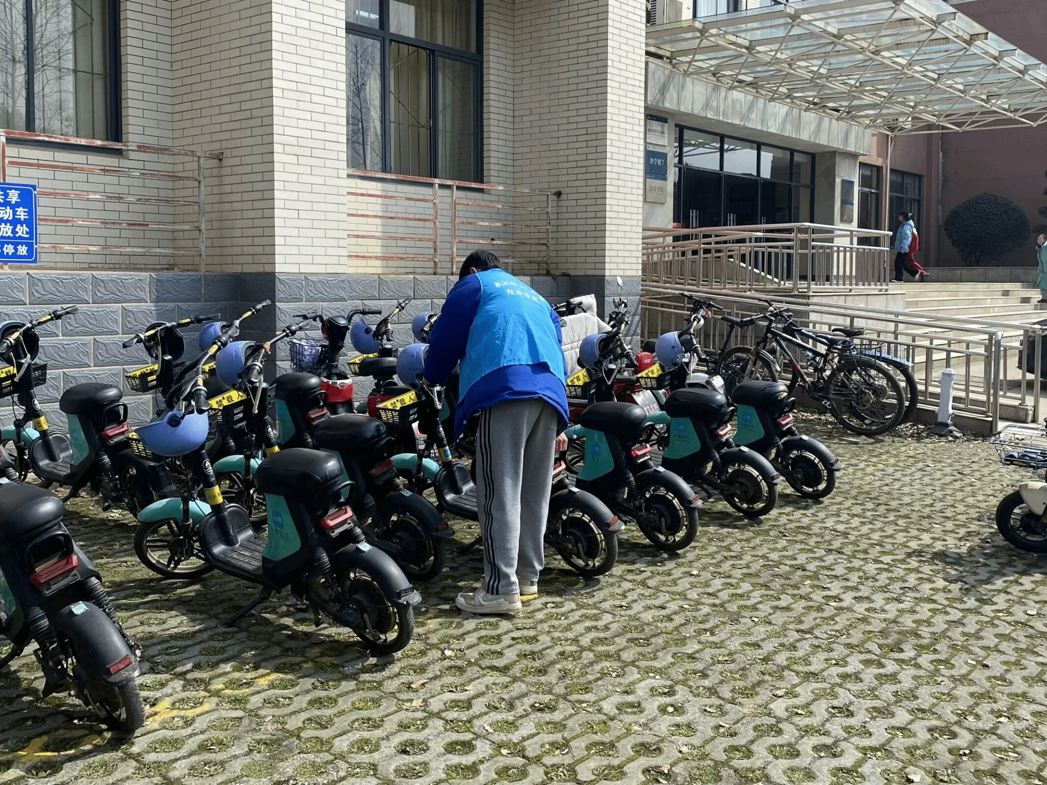 鉴于崇德楼前电动车数量众多,过去随意摆放、杂乱无序的现象屡见不鲜,这不仅影响了员工的日常出行安全,也对校园环境造成了不良影响。为此,公司特别招募了一批电动车停放引导员,旨在通过他们的引导与帮助,让电动车停放秩序焕然一新。