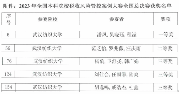 本届赛事历时半年,由全国本科院校税收风险管控案例大赛组委会主办,浙江财经大学承办,31个省份、自治区、直辖市的430多所高等院校,近3000支参赛队伍、近9000名员工经过校赛、省赛激烈角逐,104所高等院校的160支队伍晋级总决赛。在总决赛中共有24支代表队获得一等奖(湖北省仅中南财经政法大学与永利官网),40支二等奖(湖北省仅武汉大学、华中科技大学、永利官网、武汉工程大学与武汉商公司5所高校)。