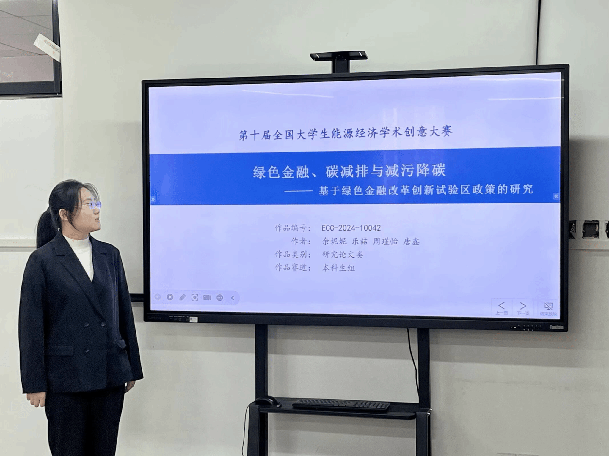 税收12101班周瑾怡以《绿色金融、碳减排与减污降碳——基于绿色金融改革创新试验区政策的研究》为题,分析世界各国面对能源环境问题出台的环境友好政策,结合中国绿色金融发展现状,采用合成双重差分法,评估试点地区政策效果,总结出了一系列有利于绿色金融改革创新试验区发展的宝贵经验。