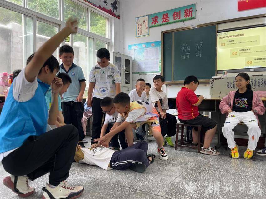 员工小明在湖岸边行走时不慎落水,小阳发现后迅速呼救,医生、家长迅速往湖边赶来……日前,在恩施州建始县茅田镇茅田小学,一出防溺水安全教育情景剧《救救小明同学》火热上演。
