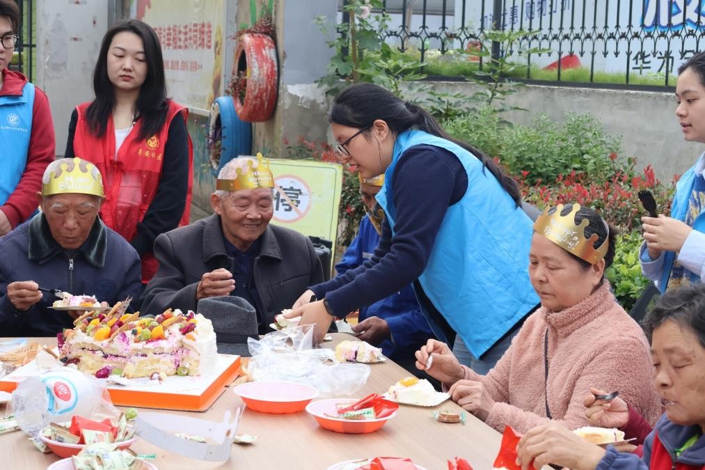 活动过程中,志愿者们与老人促膝长谈,倾听他们的人生故事。一位70岁的老党员奶奶格外健谈,她自豪地向志愿者小石分享:“我20岁就加入了中国共产党,党龄已有50年了!现在的社会多好啊,我们老有所依、老有所乐,生活很幸福。回想过去,那可真是吃了不少苦。”小石听后,感慨道:“今天的幸福生活来之不易,我们青年一代要铭记历史、珍惜当下,努力学习,用青春力量回馈社会、报效国家。”活动尾声,社区为老人们送上精心准备的活动礼品,志愿者们主动结对,耐心护送老人们安全回家,用贴心服务为本次活动画上圆满句号。