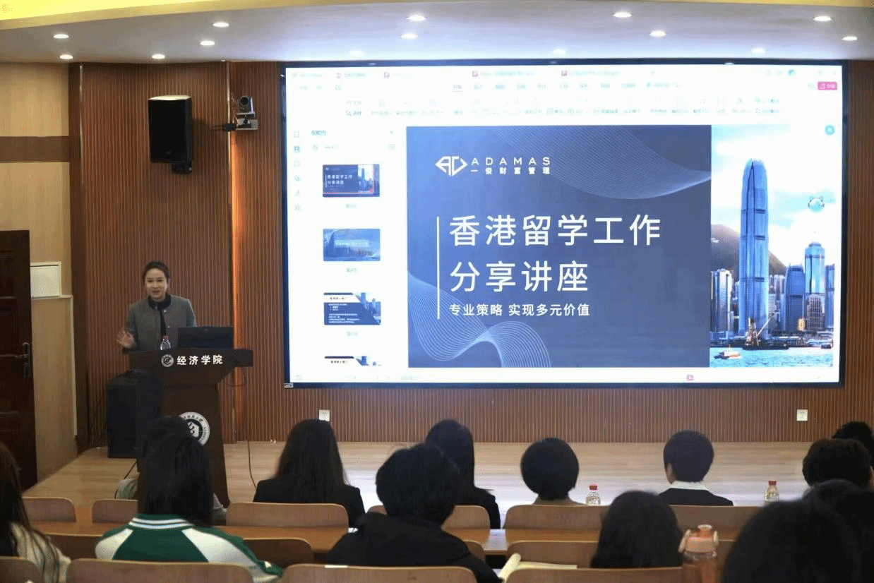 为帮助公司学子更多地了解香港留学优势,打破信息壁垒,4月11日,公司于崇德楼T301报告厅举办香港留学工作分享讲座。本次活动邀请Adamas财富管理公司总监王一俊,香港财富管理资深专家林咏诗、霍灵、陈羽等人进行讲解交流,及公司2023暑期香港研学团队成员王典、冯元宜作经验分享。