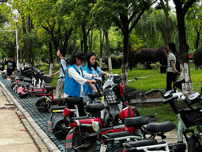 活动期间,志愿者们分工明确、协同合作。他们分成两队,一队负责摆放校园共享电单车,另一队负责摆放师生的私家电动车,并将两类电动车分区摆放,将共享电动车有序停放在内侧黄线内,将私家电动车停放在外侧的白线内,确保每一辆电动车都整齐划一地停放在标准的车位上,以免造成交通拥堵、停放混乱,引发安全隐患。