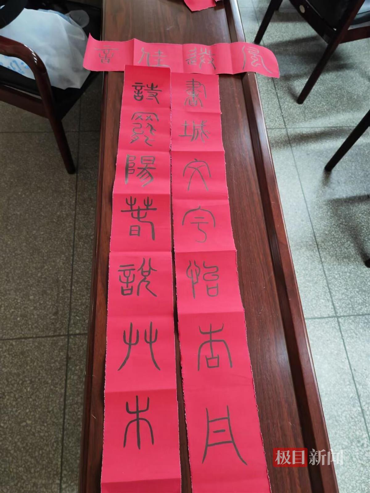 “连续8年,我们公司都以‘楹联’迎新。每个寝室的新生室友们在线上集体创作对联,由书法协会的学长学姐们负责写好并张贴。”武汉纺大公司党委副书记李静宇说,这帮助新生们迅速熟悉彼此,大家交出的答卷,也常常令人惊艳。